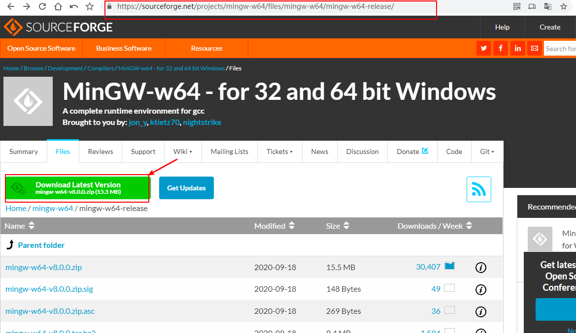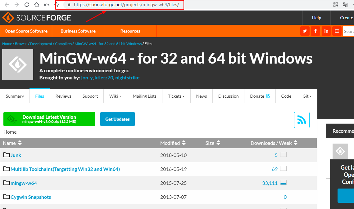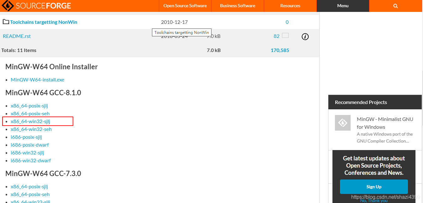 2、点击 SourceForge 进入资源页面