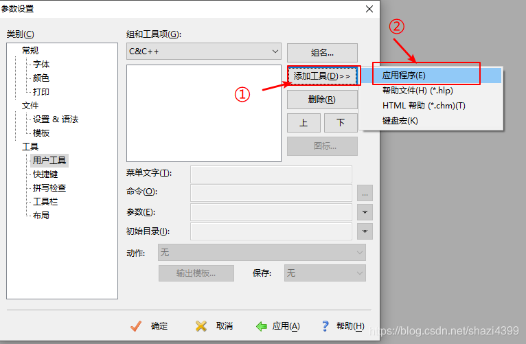 3、点击「添加工具」选择「应用程序」
