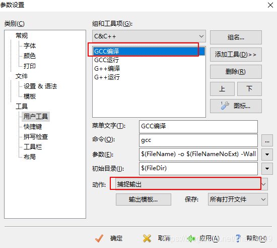 参数:$(FileName) -o $(FileNameNoExt) -Wall -std=c99