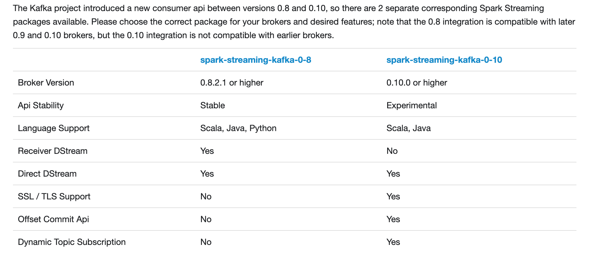 官方地址:http://spark.apache.org/docs/2.1.2/streaming-kafka-0-10-integration.html