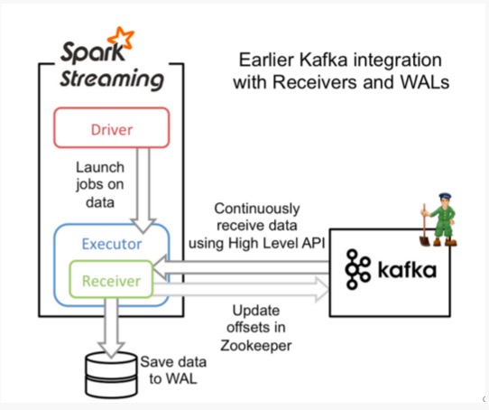 Spark 官方最先提供了基于 Receiver 的Kafka 数据消费模式。但会存在程序失败丢失数据的风险,在Spark 1.2 时引入了一个配置参数 spark.streaming.receiver.writeAheadLog.enable (WAL)以规避此风险。