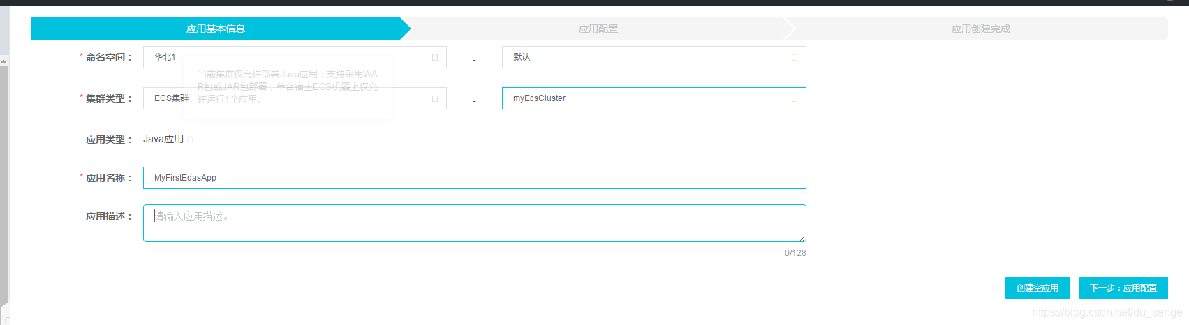 确认等待应用创建完成