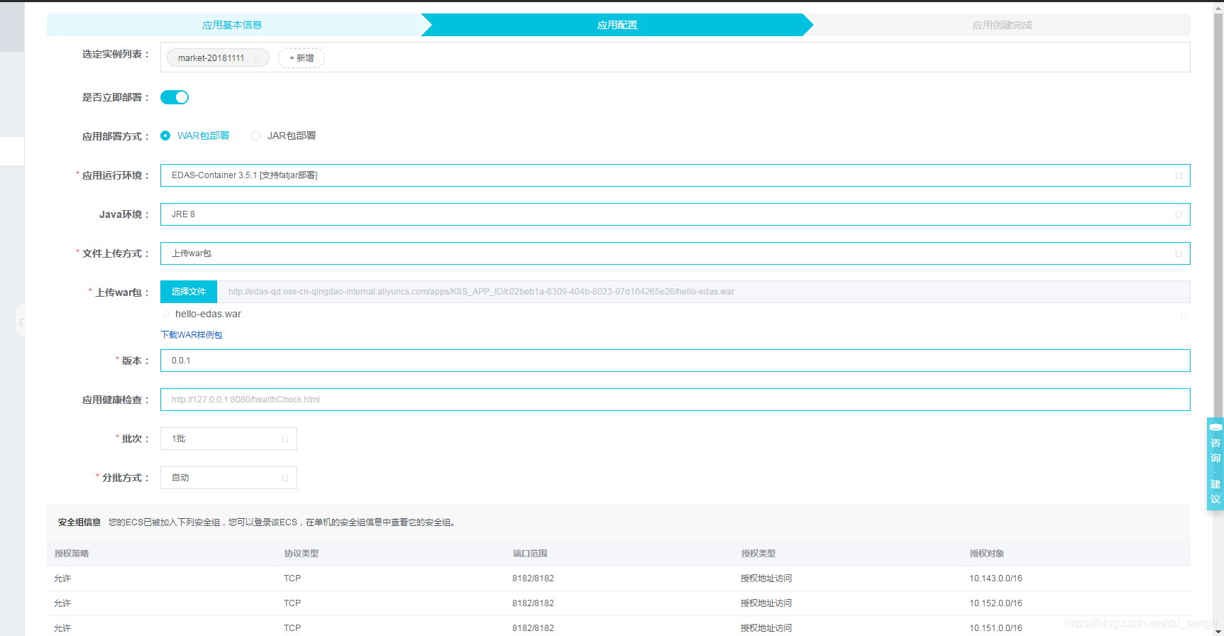 4 选择应用实例列表(可多选)并确认是否立即部署