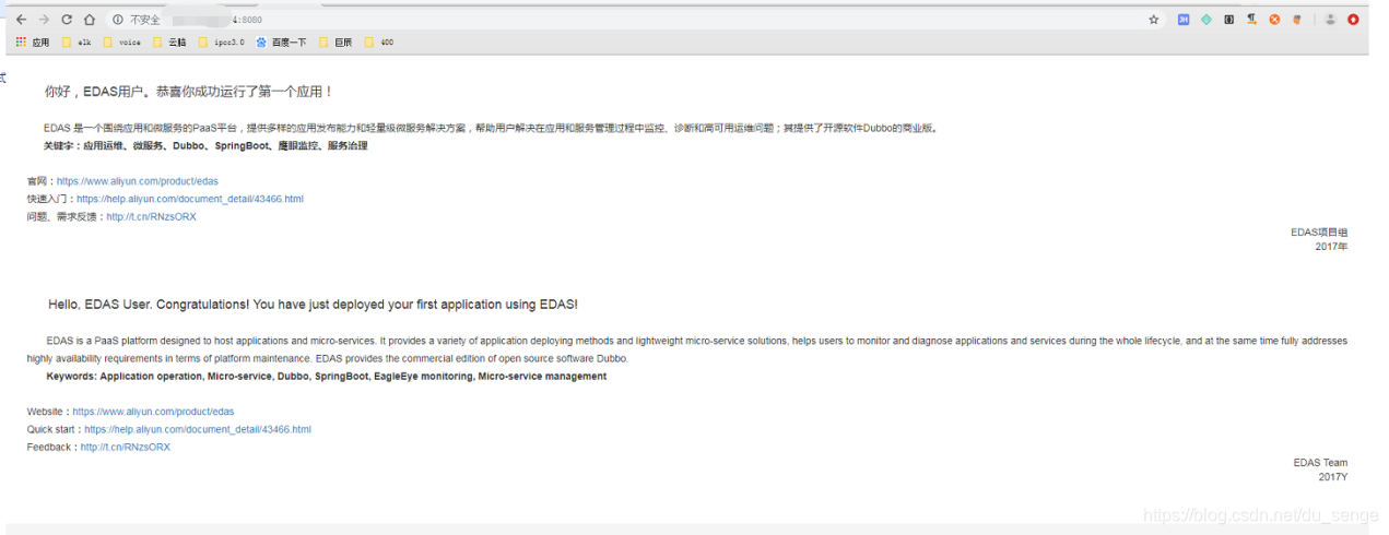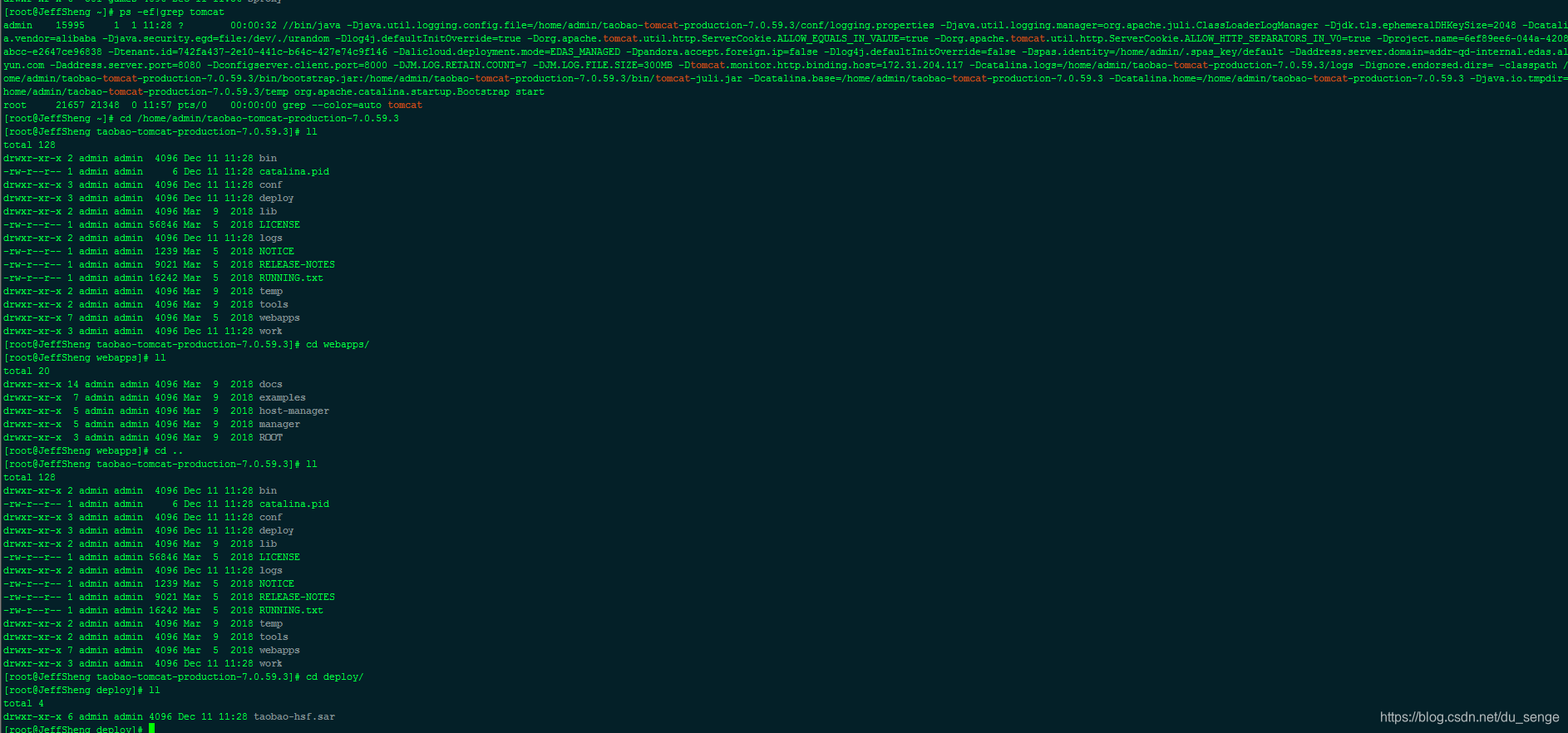 可以看到我们的linux服务器上edas已经帮我们部署了tomcat(因为我们的样例demo是war包,所以使用的是tomcat容器)