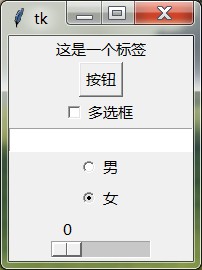 Radiobutton(root, text="男", value=1).pack()