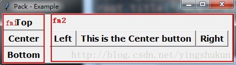 | pady | 指定一个非负值设置控件Y方向需要的边距.该值为Tkinter(Tk_GetPixels)接受的格式.当计算需要多大的窗口时,控件会把此值加到正常大小之上(由控件中显示内容决定);如果几何管理器能够满足此请求,控件将在上端或下端得到一个给定的多余空边.大部分控件只用此项于文本,如果它们显示位 图或图像,通常忽略空边选项 | pixels | 12 3m | Button |
