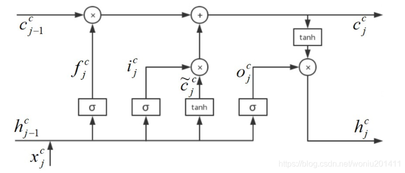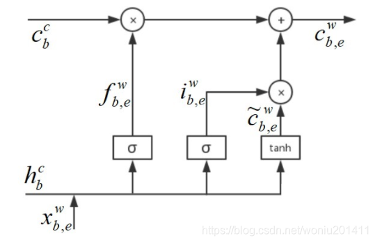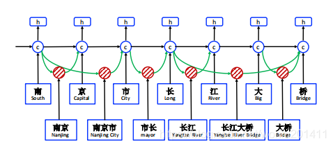 Lattice LSTM处理词粒度的LSTM结构如下,与字符的LSTM相比,没有输出向量: