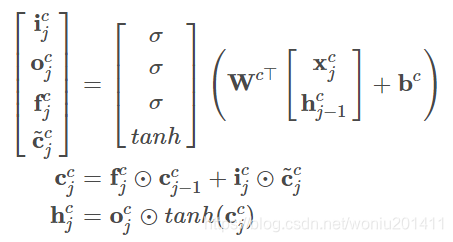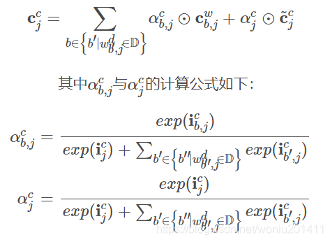 对应的数学公式如下,其中c是字粒度变量,j表示序列的当前位置,