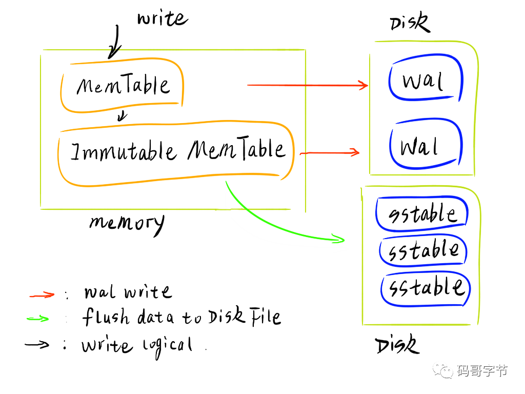 MemtableMemtable达到阈值时,复制Imutable Memtable异步刷入磁盘
