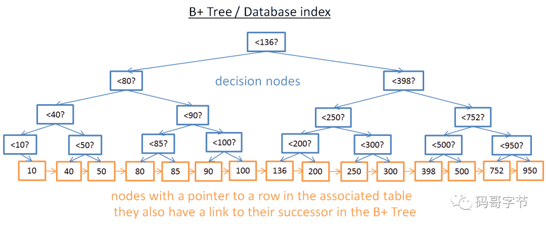 其余节点仅仅用于查找到最终的叶子节点(叶子节点包含了所有的 key)