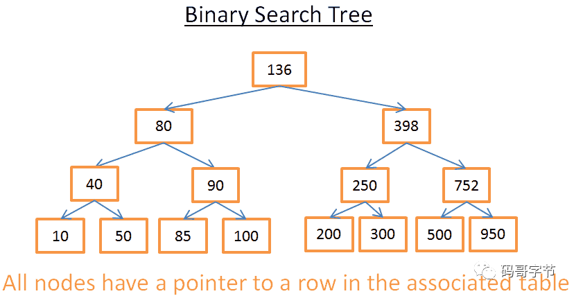 在索引结构中,树的每个Node包含一个 key 值,一个数据指针(或数据 id、磁盘 offset 等)