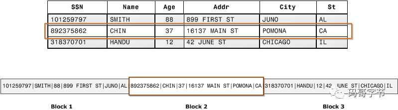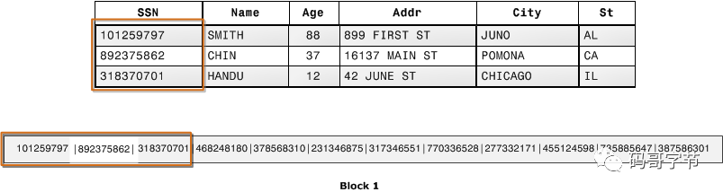 这样如果针对某一列做分析聚合,只需要找到相应列的文件,或数据块的位置,比如,要计算上图数据的平均 Age,只需要获取 Age 列的数据集即可。但是,面向行的存储引擎仍然需要将所有行从磁盘加载到内存中、解析它们,并过滤出不符合所需条件的行。这可能需要很长的时间。