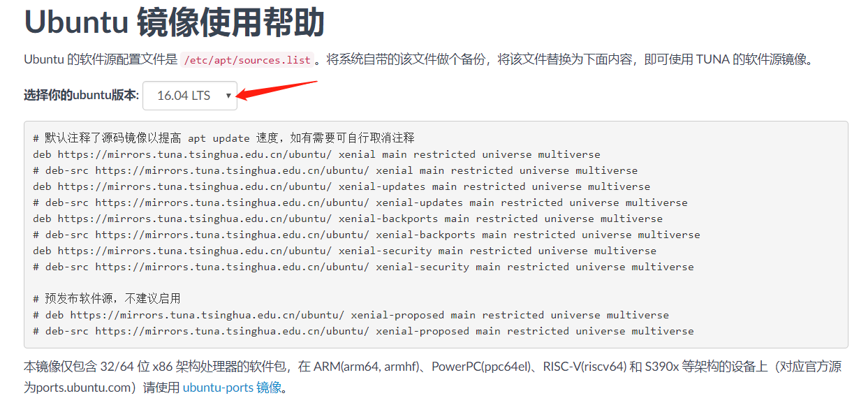 3.uname -a(内核)3、复制上面的镜像写入配置文件/etc/apt/sources.list