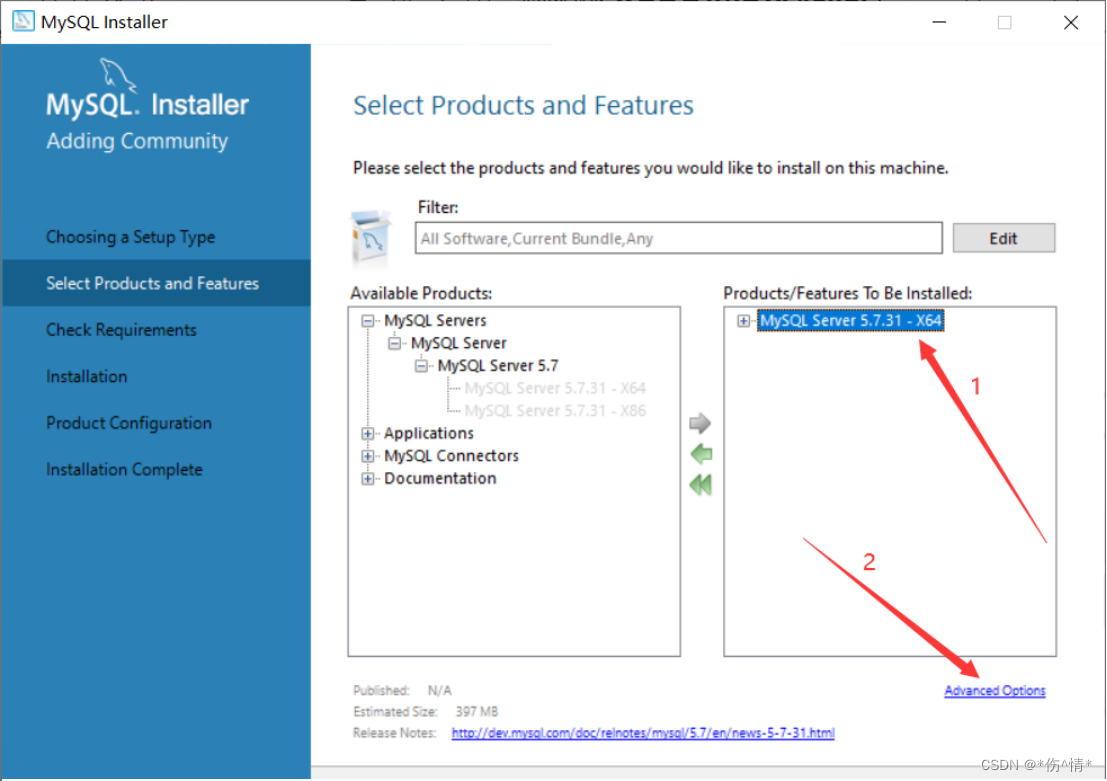 点击MySQL Server 5.7.31后,点击Advanced Options