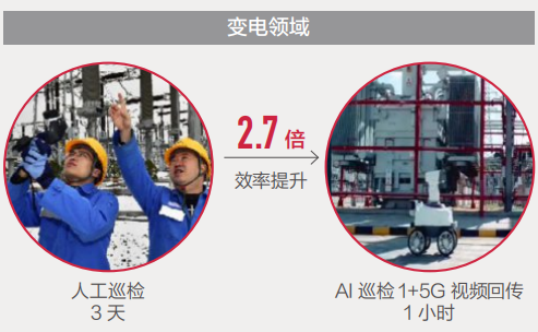 5G+AI为电网提供了安全灵活的智能虚拟专网服务,极大的助力了南方电网的数字化转型战略。在配电场景,通过5G高精度授时和低时延,实现配网差动保护,降低建网成本50%;在输变电场景,通过5G+AI实现智能巡检,工作效率提升80倍。通过端到端切片技术和芯片加密技术, 保障了电网业务的安全隔离。