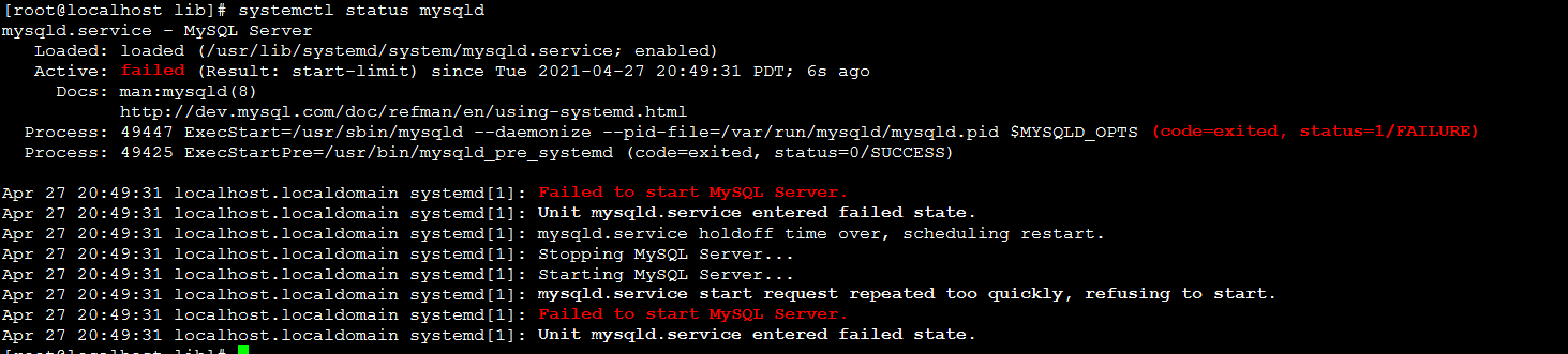 Apr 27 20:30:34 localhost.localdomain systemd[1]: Starting MySQL Server...