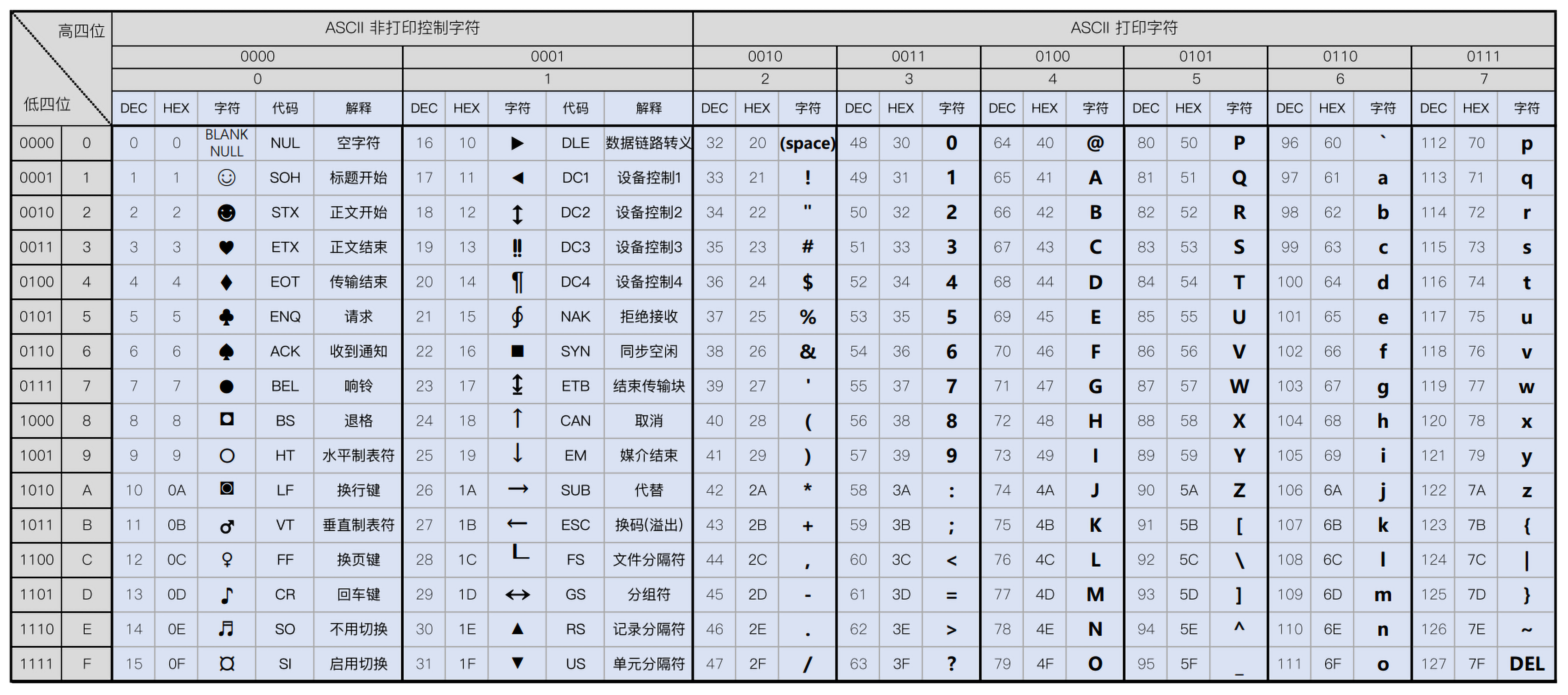 下图为ASCII表截图:需要源文件可私聊免费白嫖