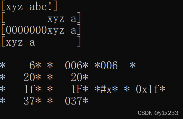 printf("[%-6d]\n\n", a); //6位宽度,从右打印