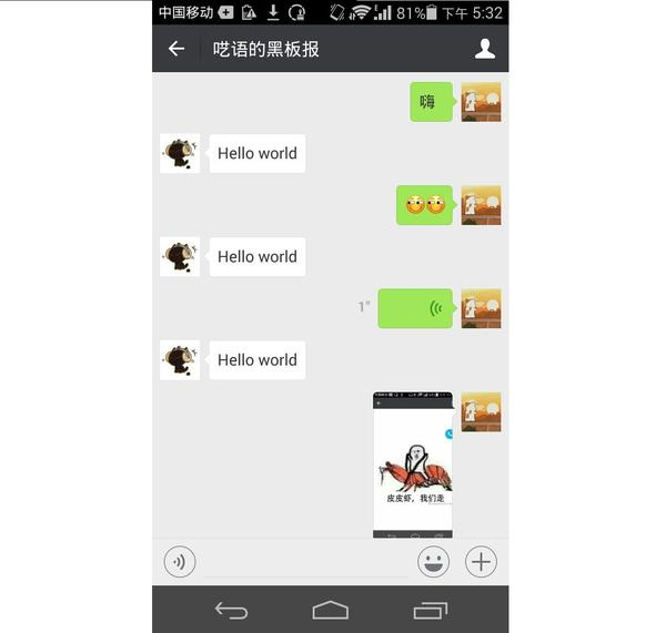 打开手机微信客户端,关注公众号,并回复任意消息。若收到 “hello world”,证明微信公众号后台已搭建成功。