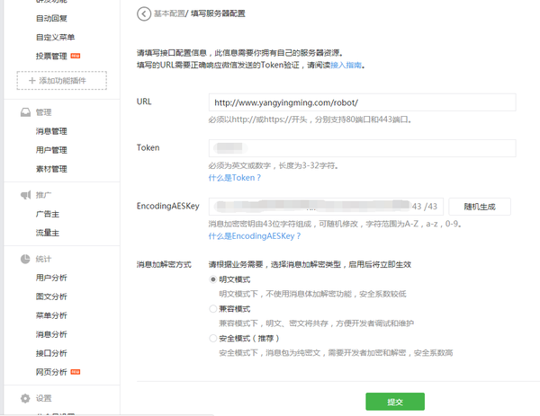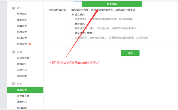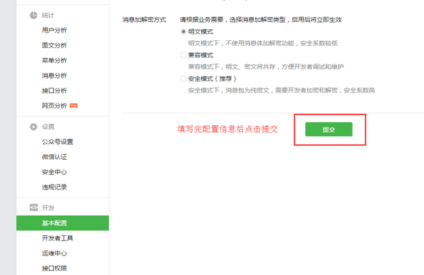 微信后台的代码我们已经写好了,回到后台的服务器配置页面,点击 提交。