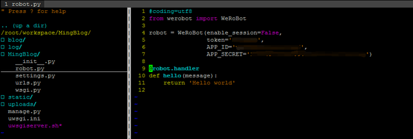 下面我将使用WeRoBot搭建一个简单的微信公众号后台,并集成在一个已上线的Django网站项目中。