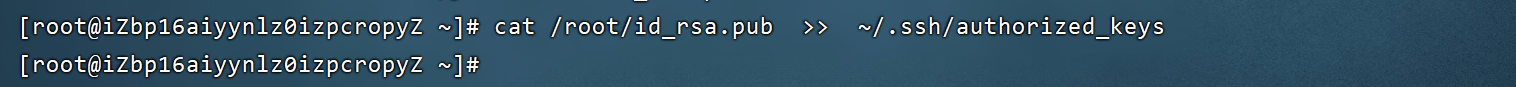 cat /root/id_rsa.pub >> ~/.ssh/authorized_keys