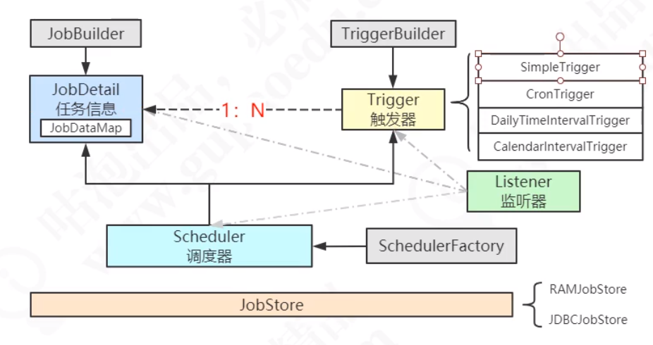 jobstore 保存任务信息,一种是保存到内存,另一种是通过jdbc 持久化。