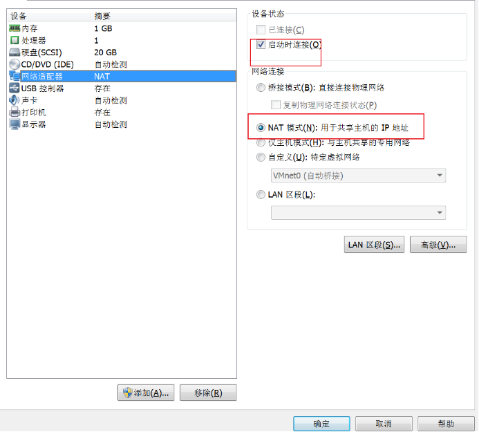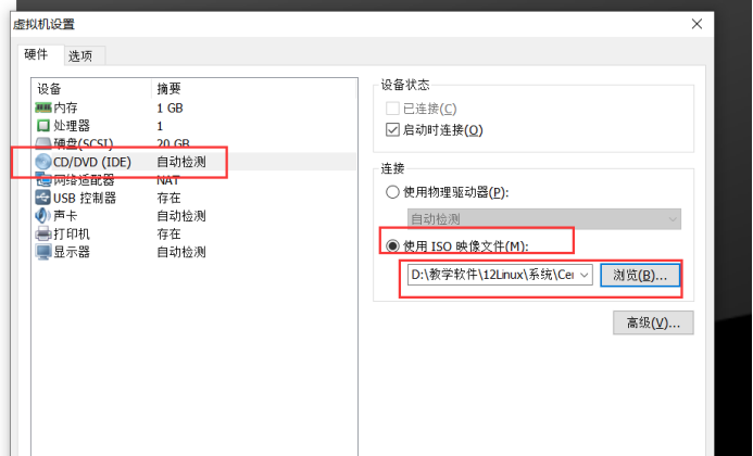 设置状态:因为现在还没有安装操作系统,安装操作系统之后注意把已连接勾上