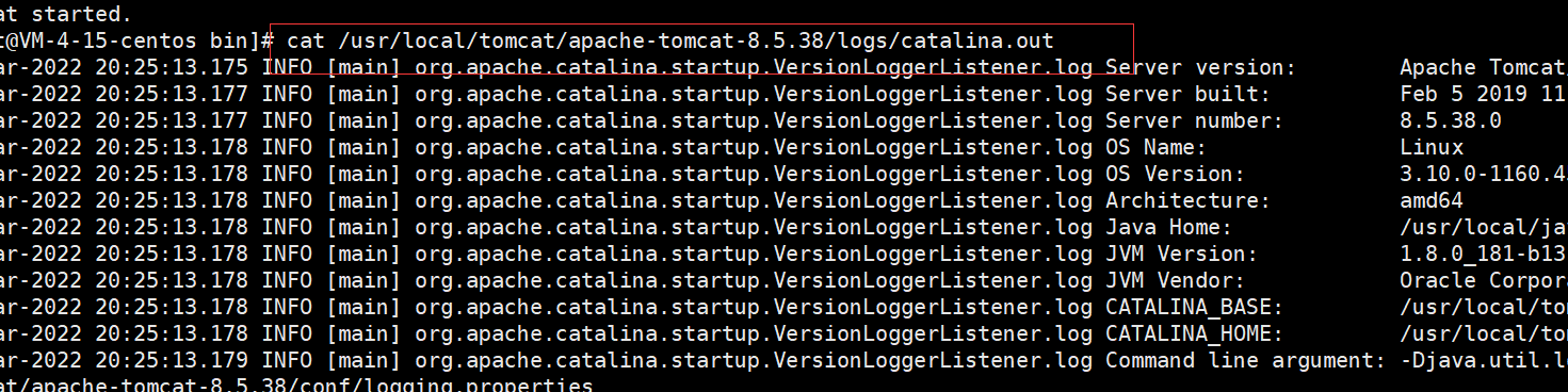 Cat /usr/local/tomcat/tomcat-v8/logs/catalina.out