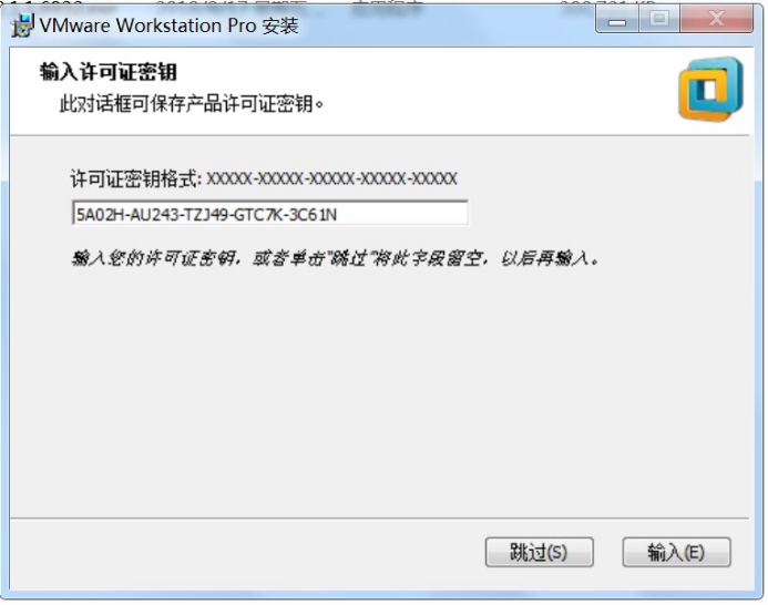 点击许可证输入密钥5A02H-AU243-TZJ49-GTC7K-3C61N