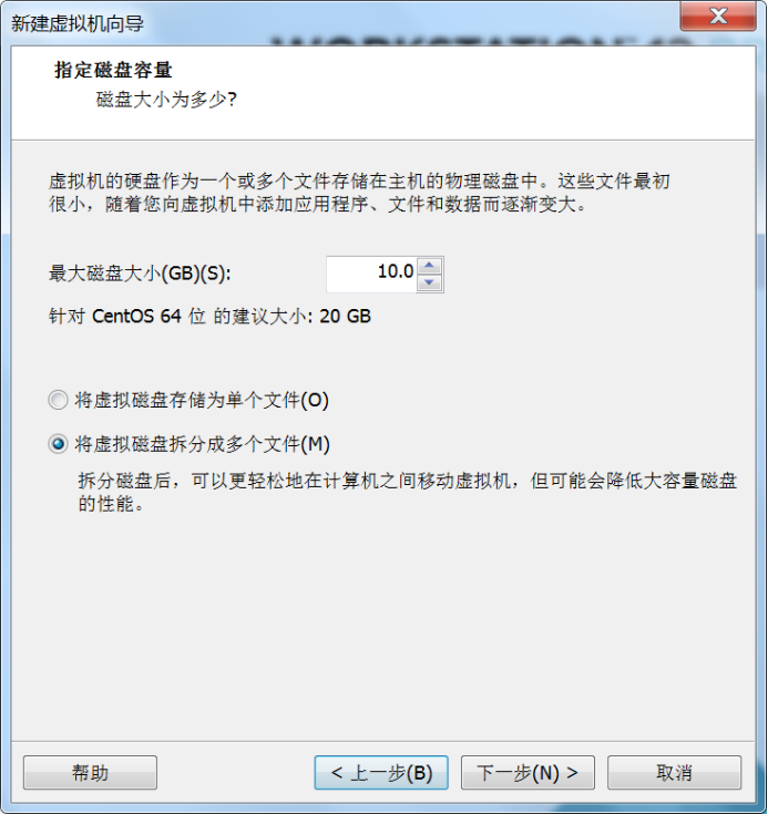 这里选择大小可以根据自己的需求来,如虚拟机到时候要安装tomcat和mysql等软件。至少要给这个软件留足空间哦