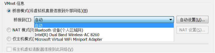 注意点:如果电脑既使用有网线,也使用了无线网络,也会桥接的时候注意选择一下网卡