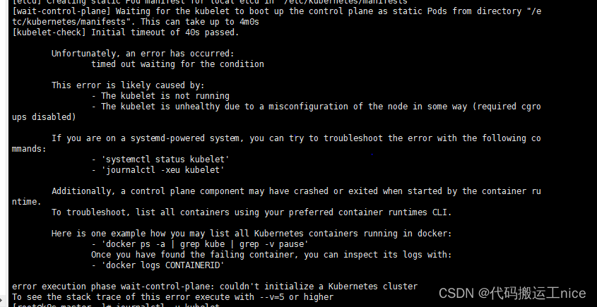 虚拟机环境都搭建好之后,开始搭建k8s集群,结果kubeadm init时,报下面错误,当时以为虚拟机环境有问题,卸载之后重装,发现还是报错,最后终于找到了解决方案: