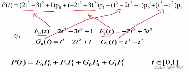 上式就是三次Hermite(三次哈密特曲线)的几何表示形式