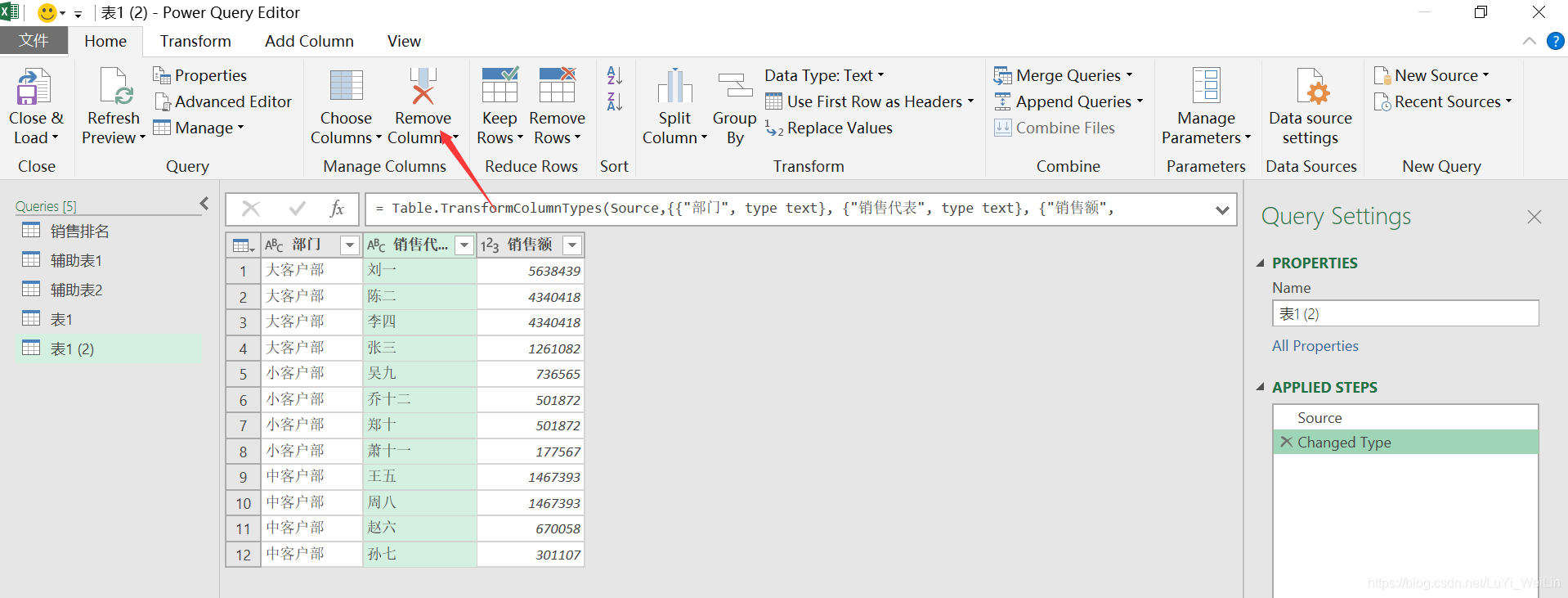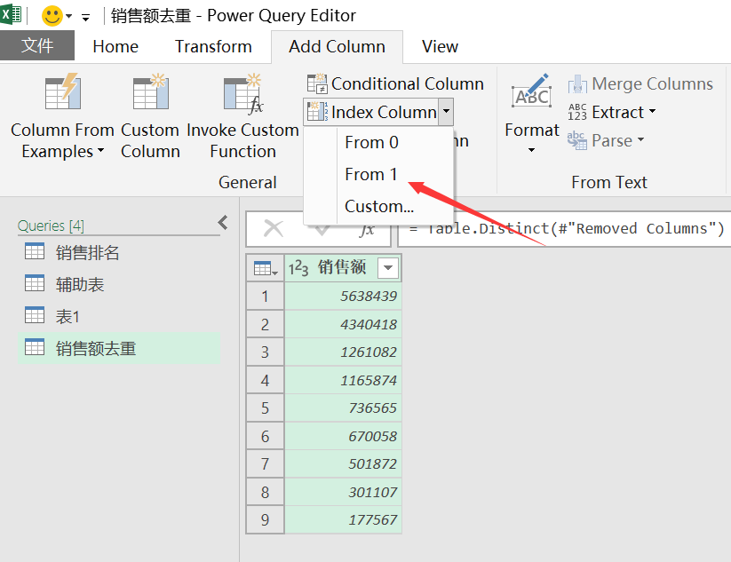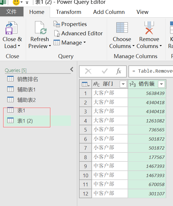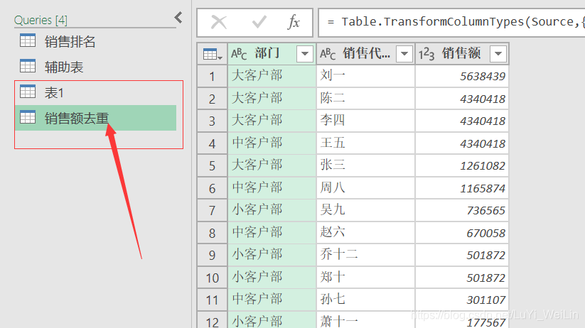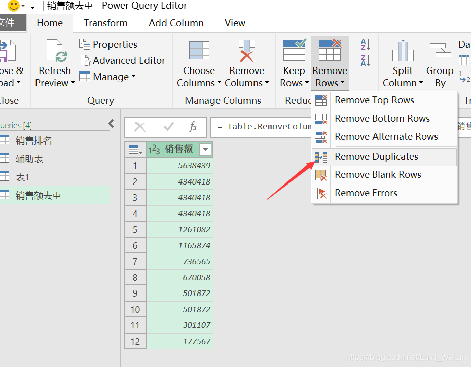数据加载进查询编辑器,复制多一个查询,修改名称为销售额去重