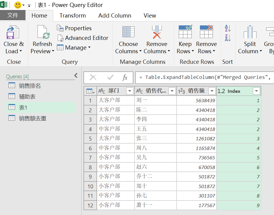 - Power Query实现中国式排名
