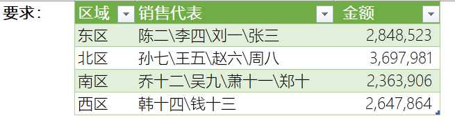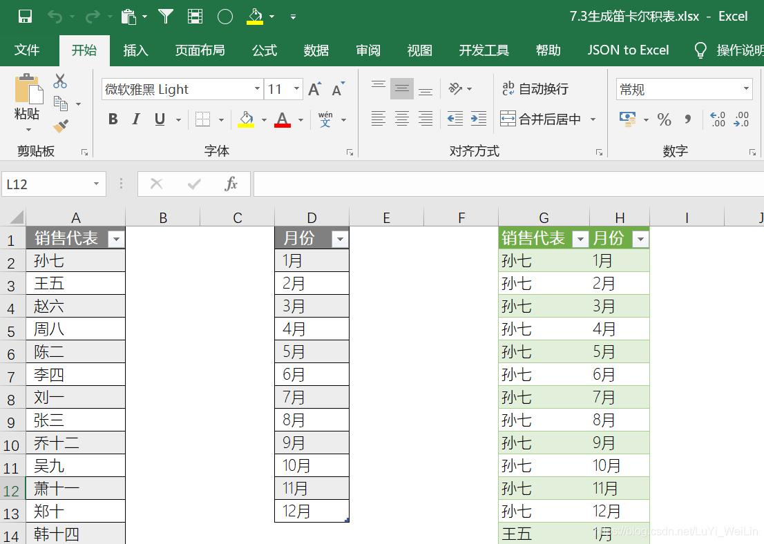 工作中我们会遇到下面的问题,销售代表所有月份(左边两个为原表,最右边为目标表)