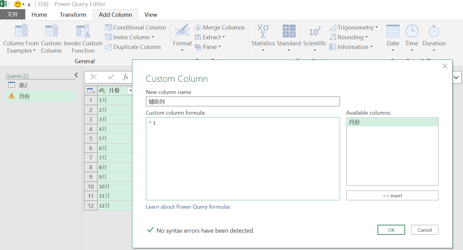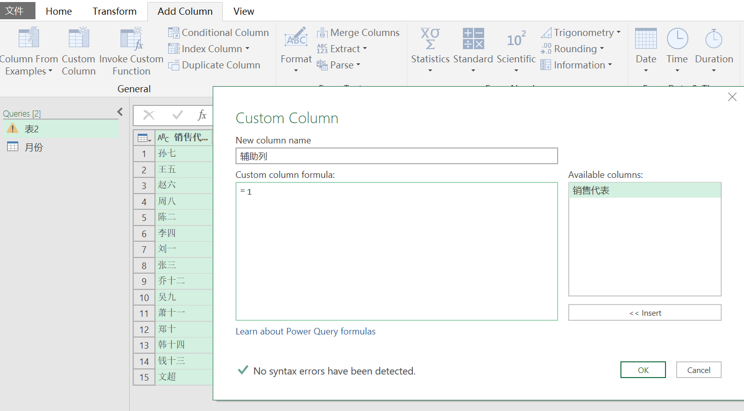 添加一个自定义列