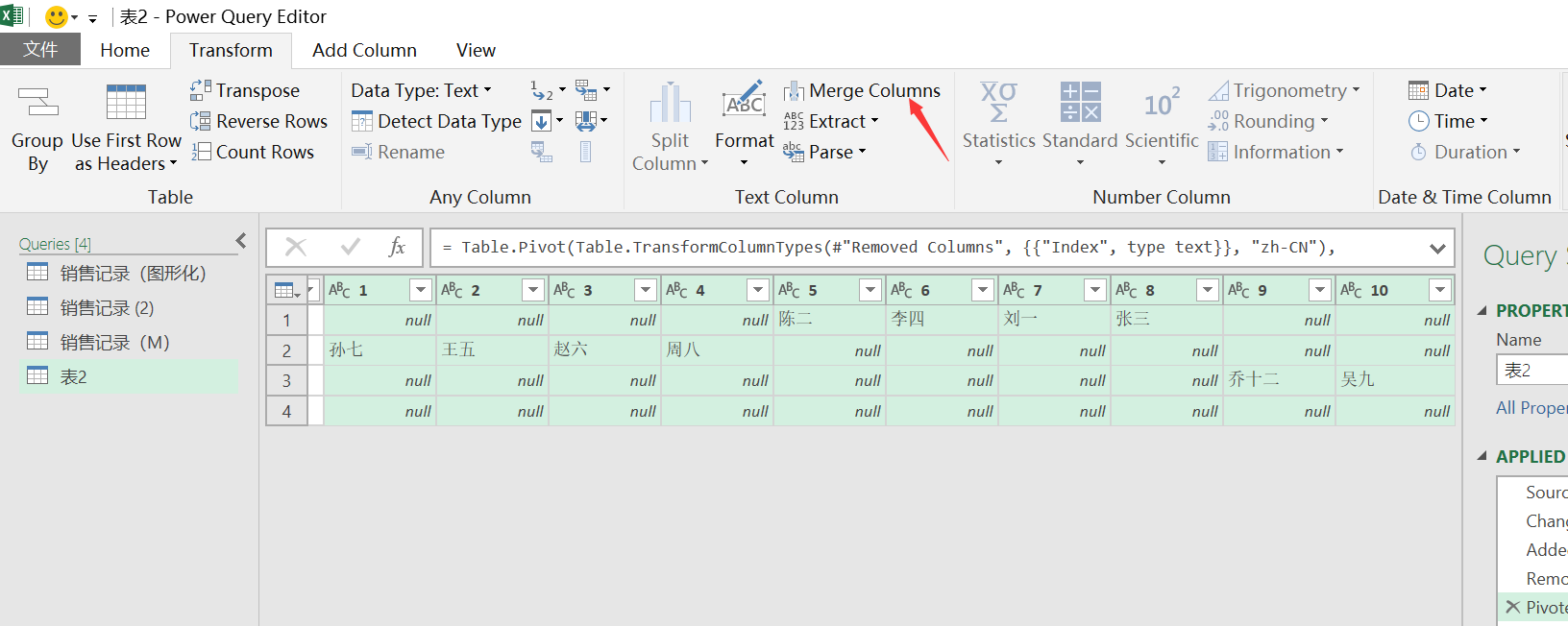 Power Query实现多行相同属性合并Excel