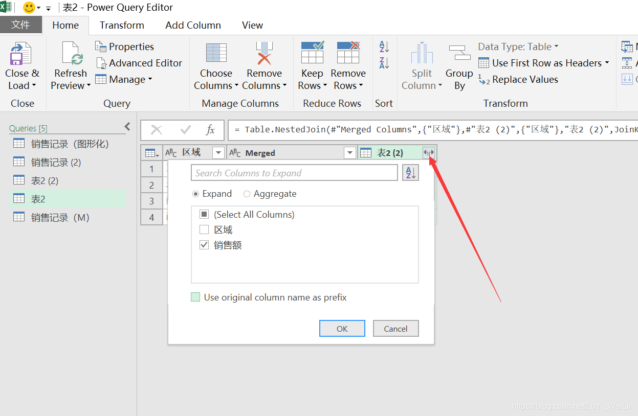 回到原来的表格,使用合并查询