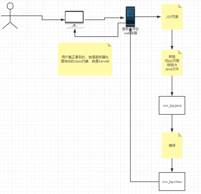 JSP里面的代码其实都转换成了我们原本在Servlet写的代码。