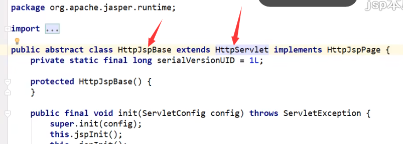 发现JSP类最终还是继承了Servlet类,所以说它本质是个Servlet