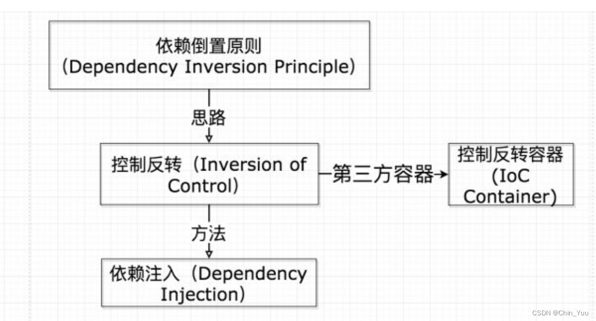 依赖注入是IOC的一种实现。 在Spring中交由容器来管理所有对象。
