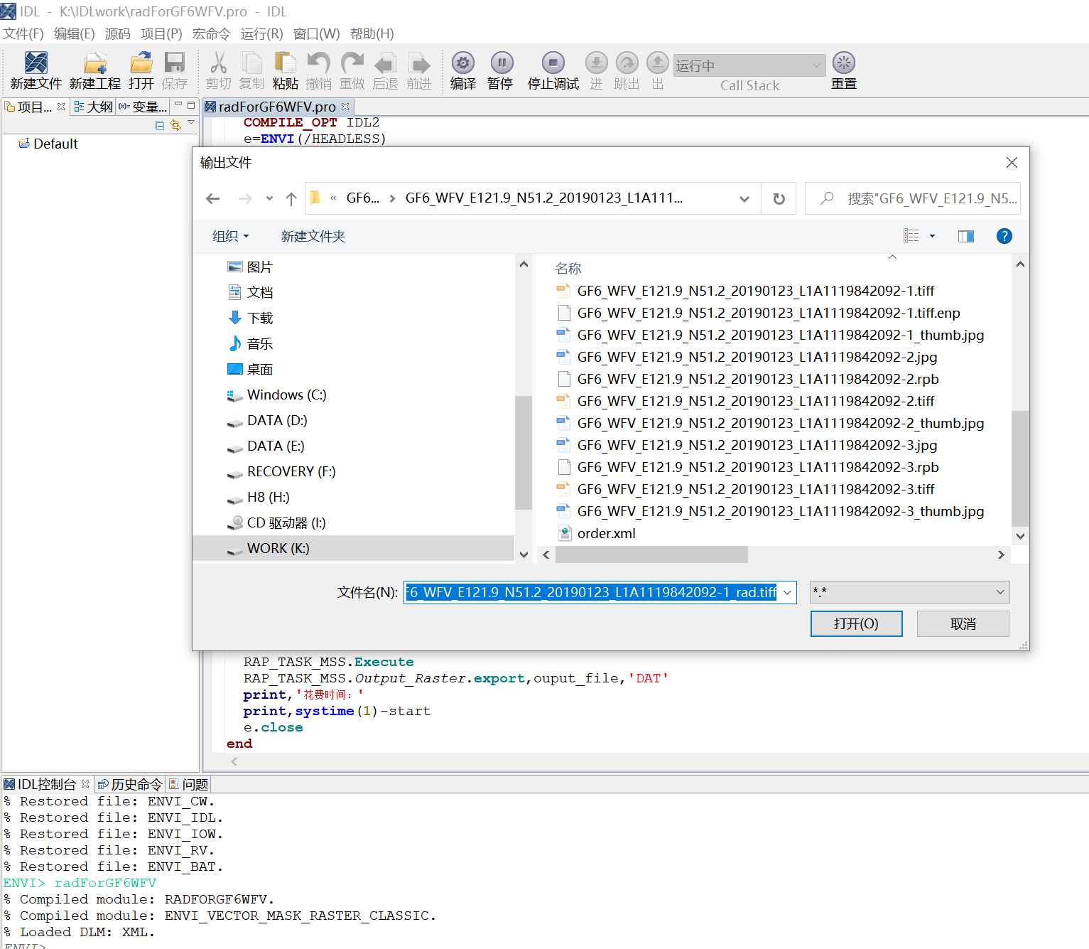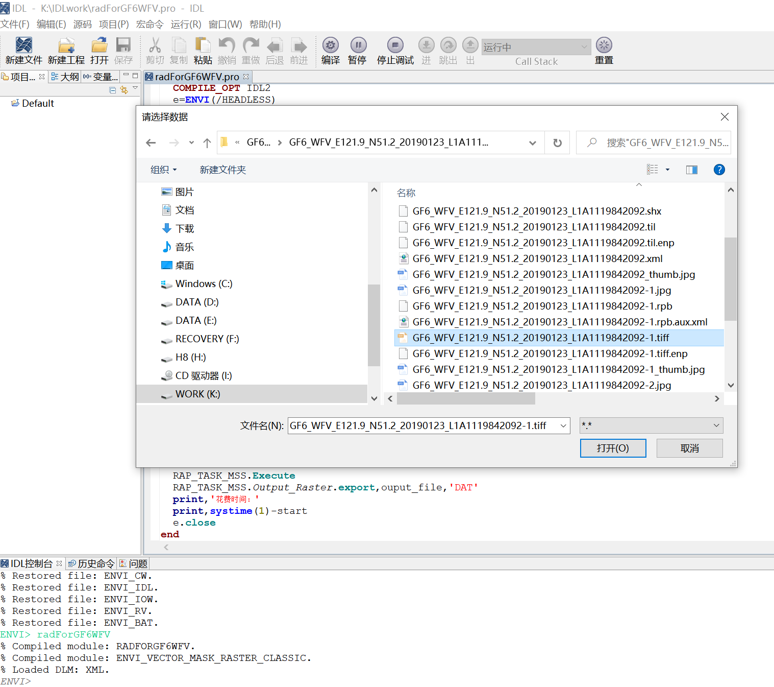 点击“运行”,弹出对话框,选择要进行辐射校正的tif文件