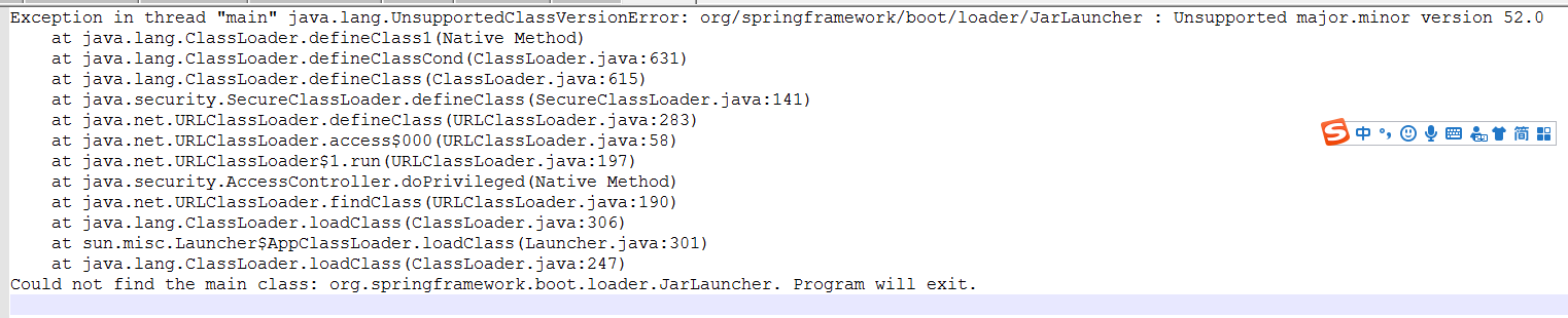 这个问题其实因为较高版本的jdk编译出来的java class文件在较低版本上的jdk上运行导致的。