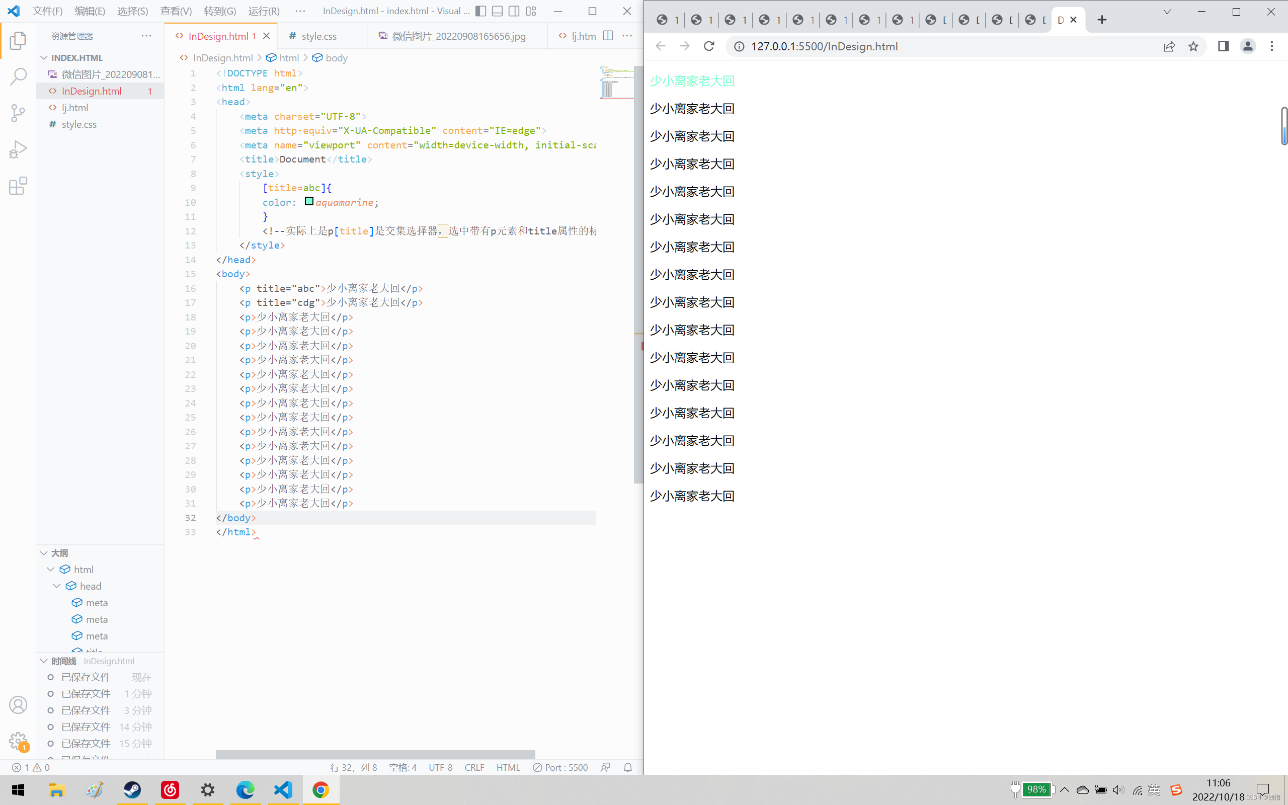 <!--实际上是p[title]是交集选择器,选中带有p元素和title属性的标签-->