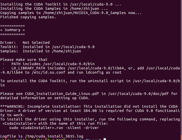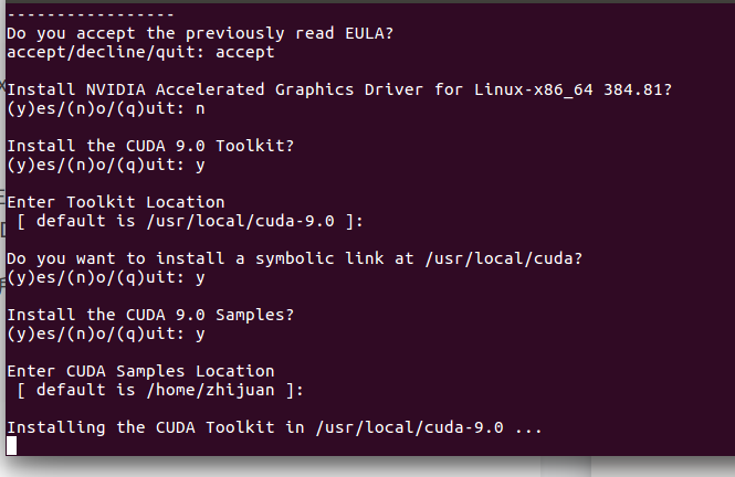 安装:sudo ./cuda_9.0.176.384.81_linux.run