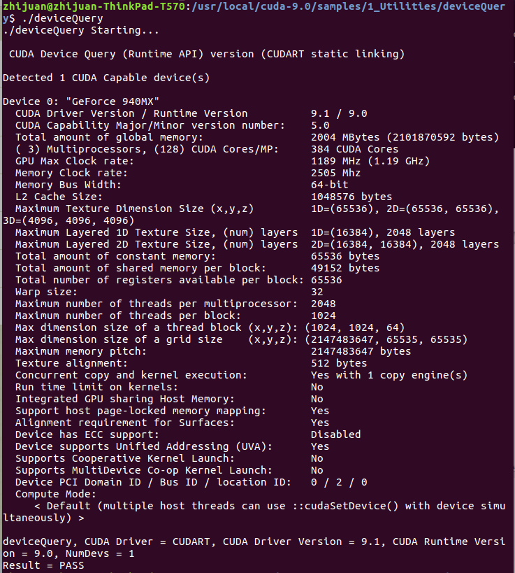 cd /usr/local/cuda-9.0/samples/1_Utilities/deviceQuerysudo make