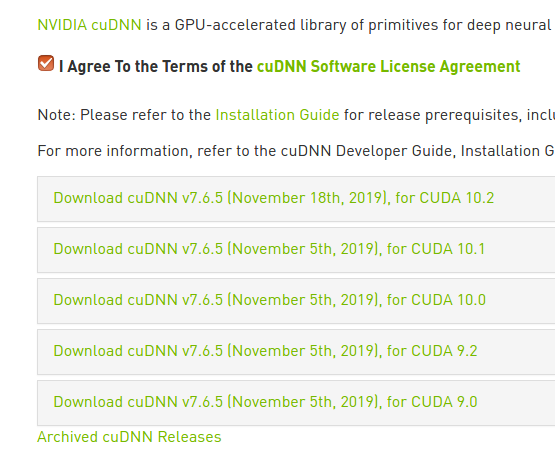对应cuda版本下载cuDNN:https://developer.nvidia.com/rdp/cudnn-download
