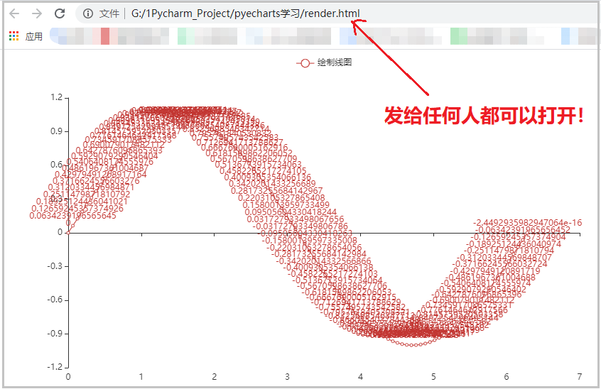 .render()默认将会在当前工作目录下生成一个 render.html 的文件,支持path参数,进行自定义文件保存位置,最终文件你可以可以发送给任何人,直接用浏览器打开,交互效果仍然存在。Jupyter Notebook中直接调用